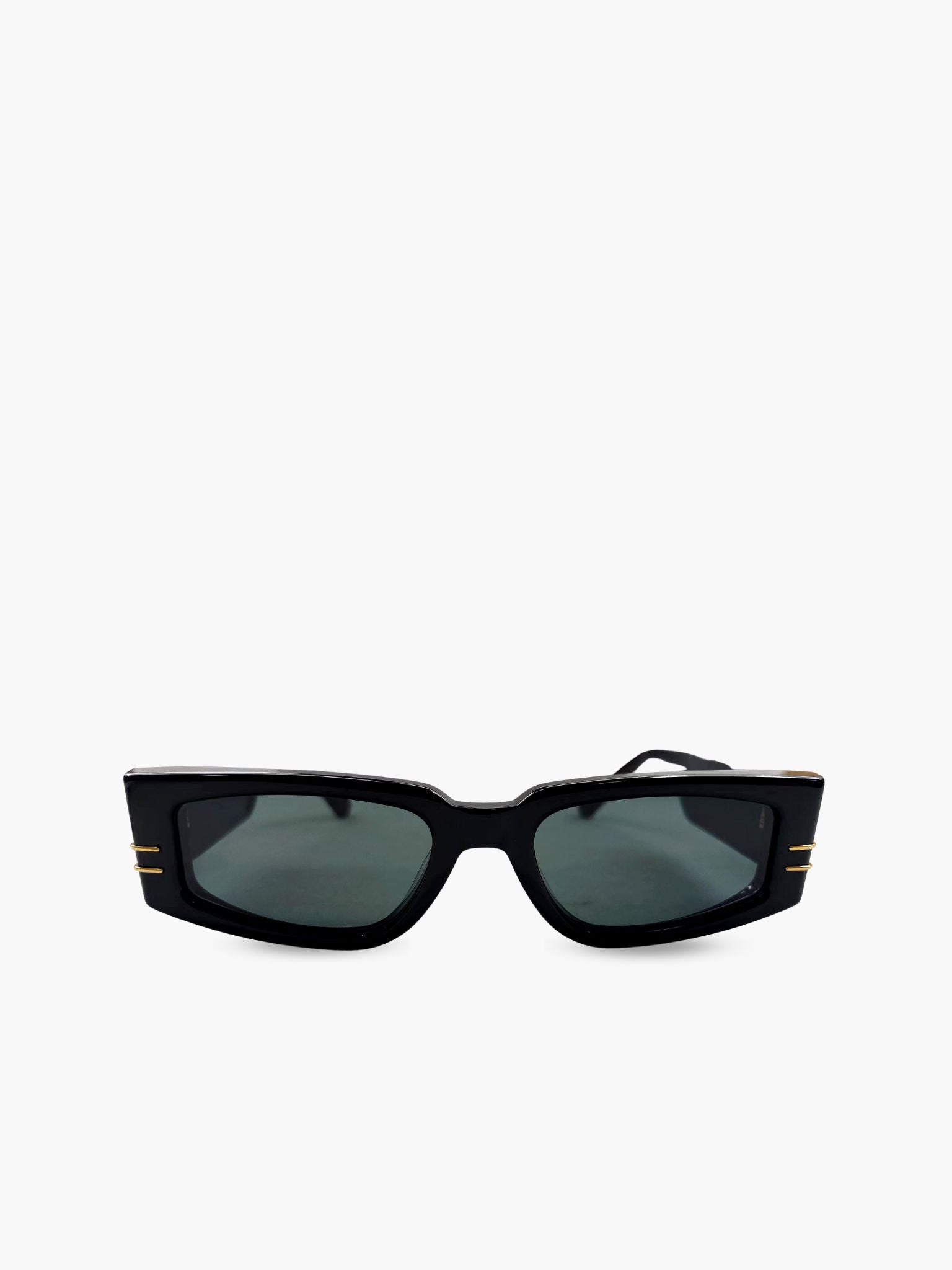 Malibu Black Gold is the eyewear with black acetate frame with golden details, and dark grey lenses.