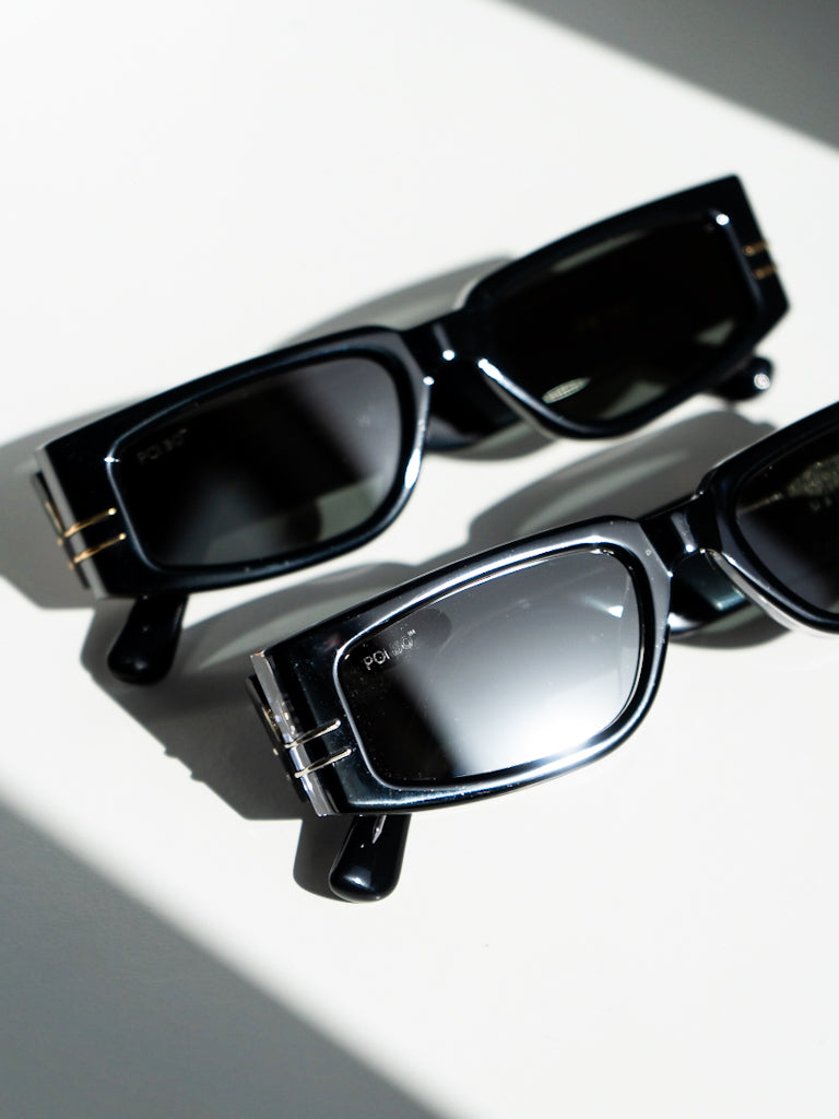A new original rectangular shape, embellished by important temples with embossed double line details and POi BO logo. Gritty and trendy, they are the accessory that will not go unnoticed.