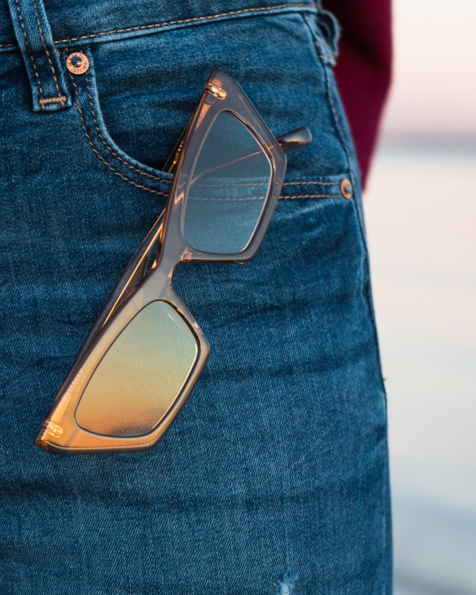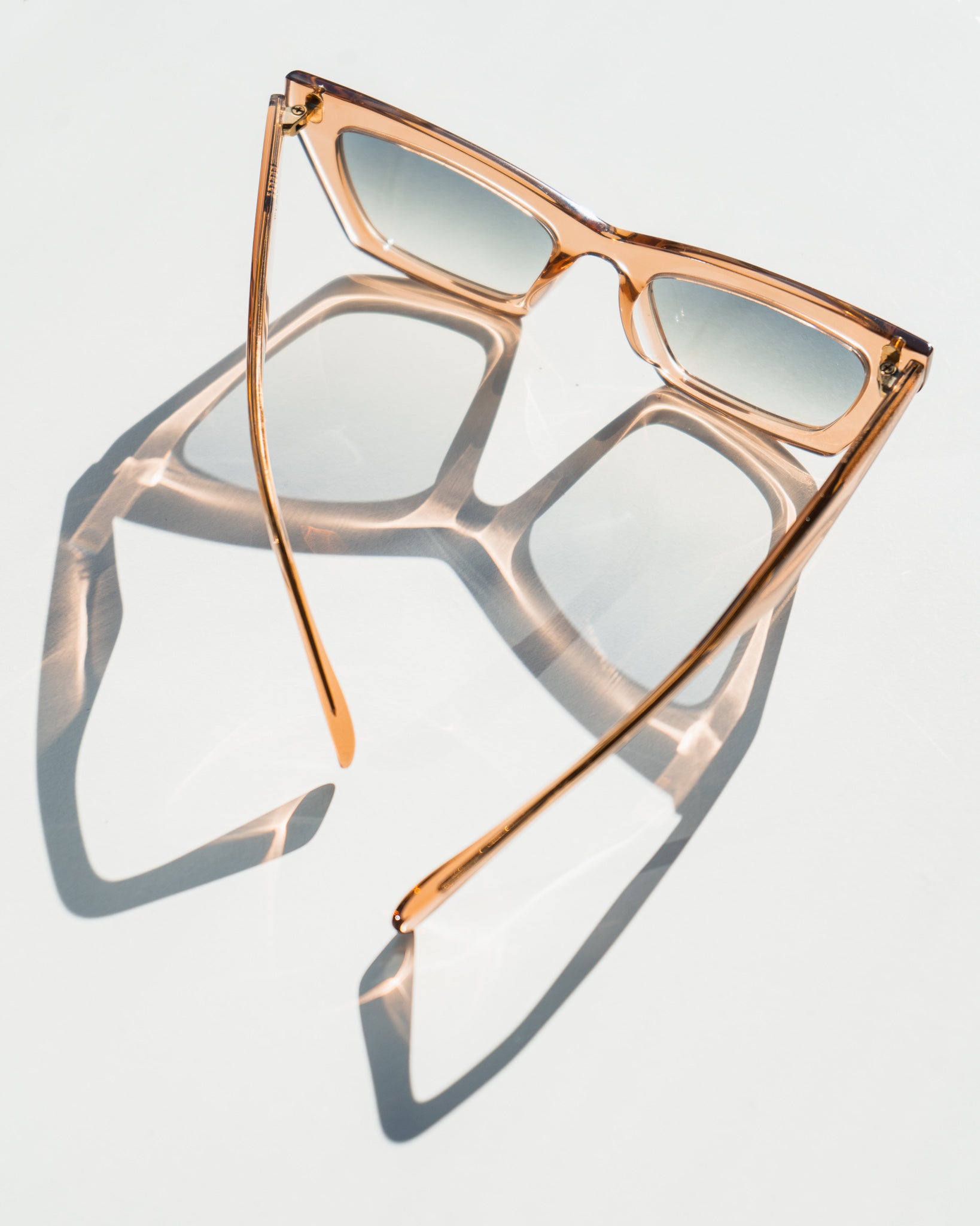 Transparent acetate with very light grey gradient lenses. Perfect for Sunset Mood and Overcast days.