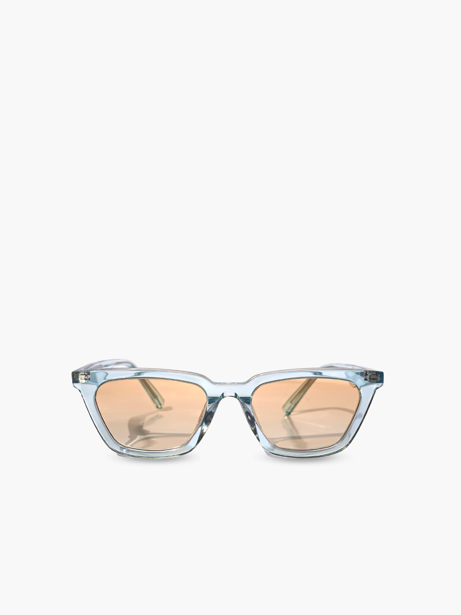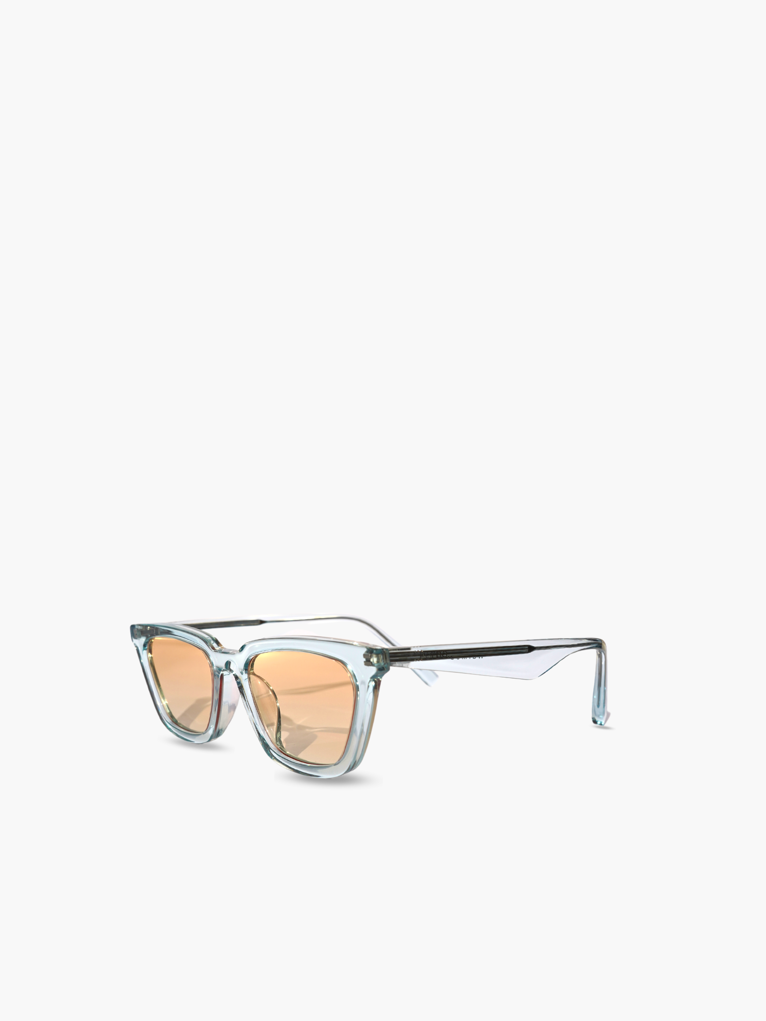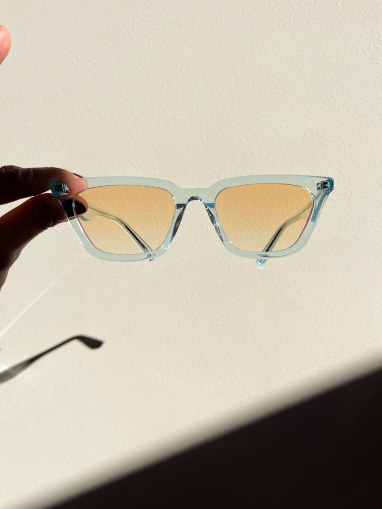 Waimea Sky is the eyewear with sky blue transparent acetate frame and orange graduate lenses.